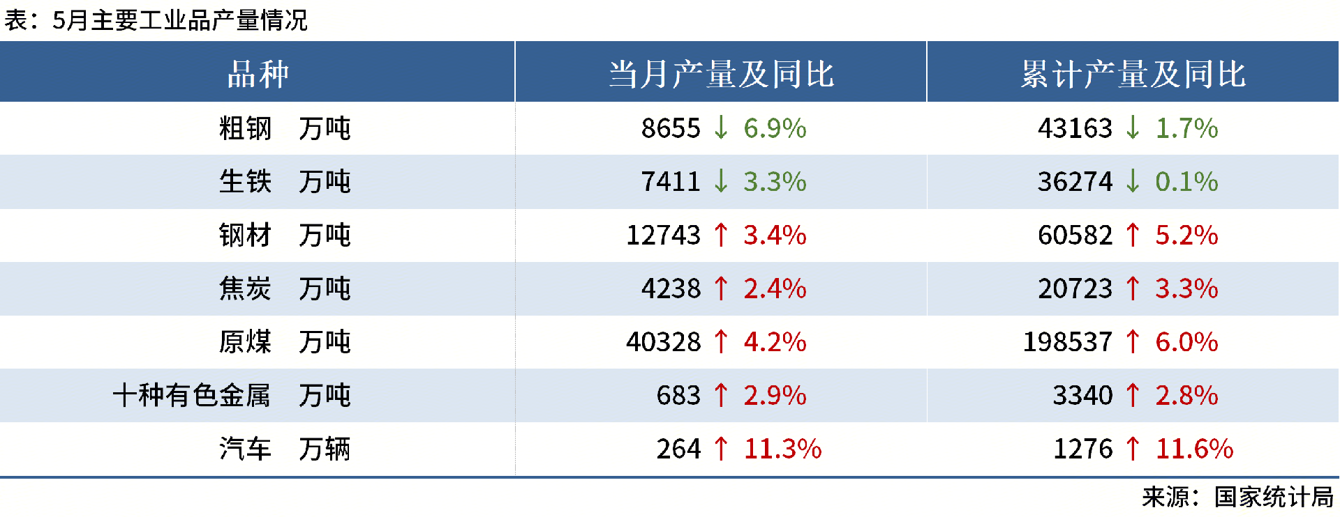 ◎國(guó)家統(tǒng)計(jì)局?jǐn)?shù)據(jù)顯示,2025年5月,中國(guó)粗鋼產(chǎn)量8655萬(wàn)噸,同比下降6.9%。其他主要工業(yè)品產(chǎn)量如下: