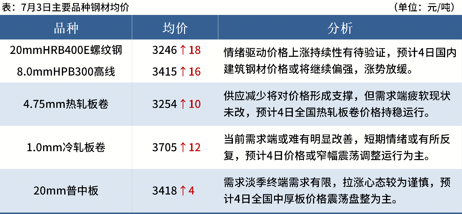 ◎ 四川德勝于7月2日起棒材陸續(xù)恢復生產,軋鋼二區(qū)已經恢復正常,日增螺紋鋼產量0.45萬噸。