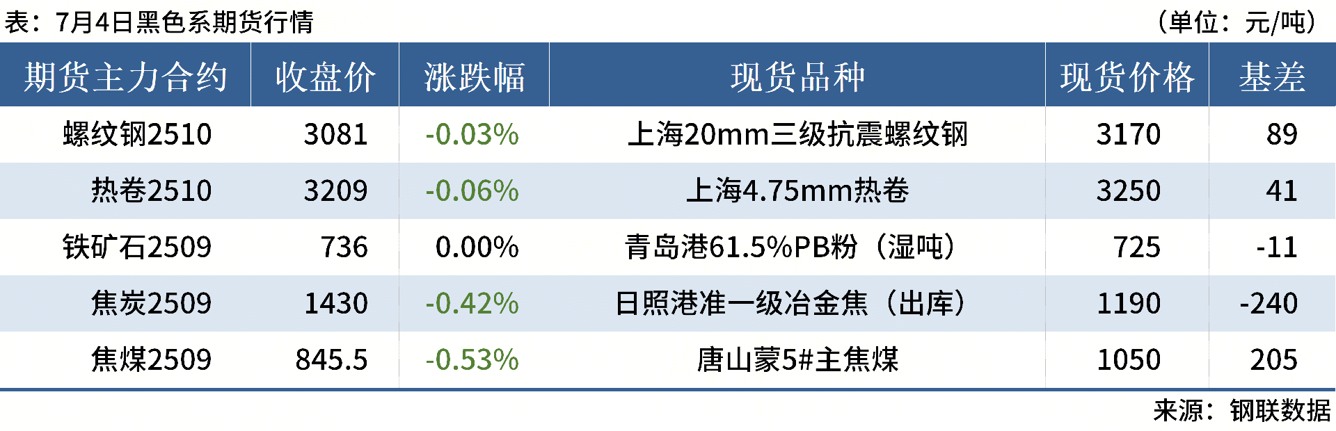 ◎ 7月4日,全國主港鐵礦石成交93.40萬噸,環(huán)比減0.8%;237家主流貿(mào)易商建筑鋼材成交9.61萬噸,環(huán)比減10.7%。