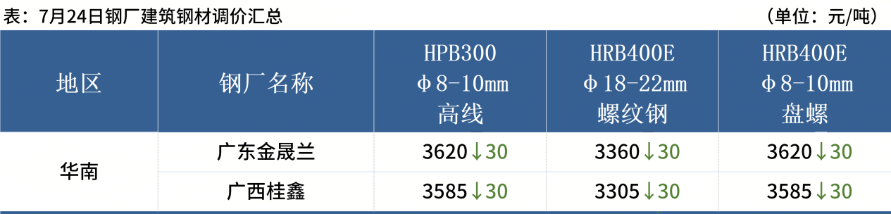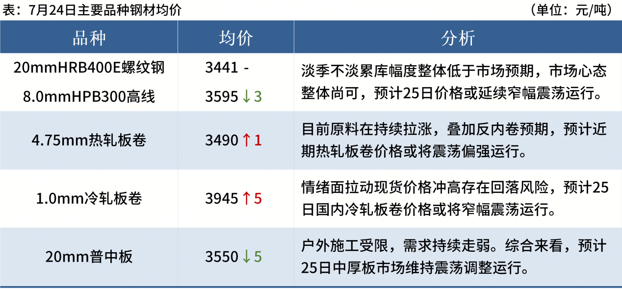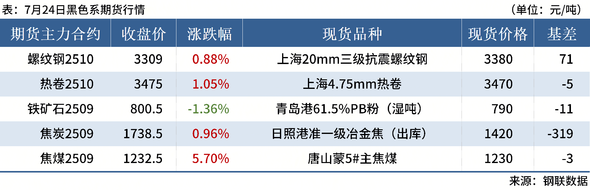 ◎ 7月24日,多地焦企提漲焦炭第3輪,下游部分鋼廠已經(jīng)接漲,主流鋼廠25日招標(biāo),幅度50-55元/噸,執(zhí)行時(shí)間7月25日零點(diǎn)。