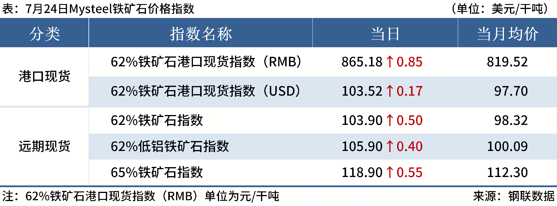 ◎ 7月24日,全國(guó)主港鐵礦石成交96.60萬(wàn)噸,環(huán)比增11.8%;237家主流貿(mào)易商建筑鋼材成交11.15萬(wàn)噸,環(huán)比增22.6%。