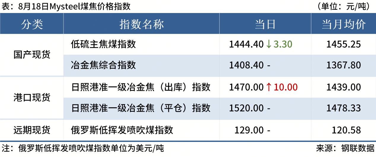◎ 8月18日,主流焦企對焦炭價格進行第七輪提漲,搗固濕熄焦上調(diào)50元/噸,搗固干熄焦上調(diào)55元/噸,自8月19日0時起執(zhí)行。