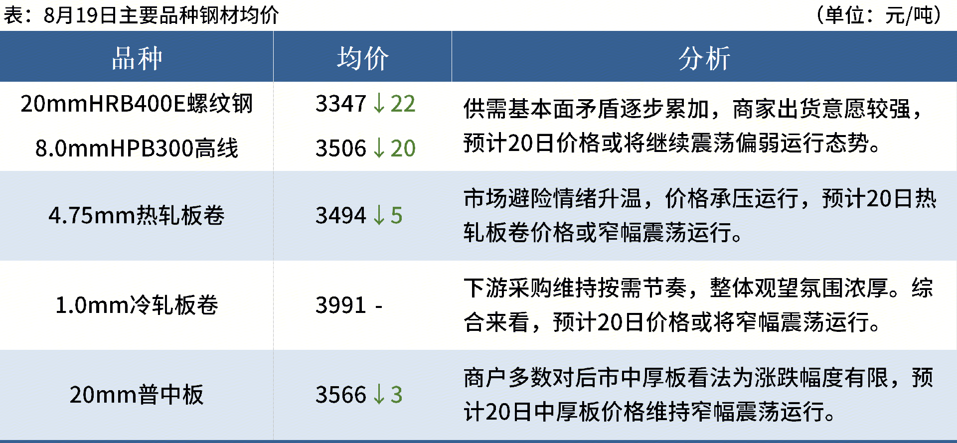 ◎ 8月19日,全國主港鐵礦石成交115.00萬噸,環(huán)比增14.7%;237家主流貿(mào)易商建筑鋼材成交9.09萬噸,環(huán)比減3%。