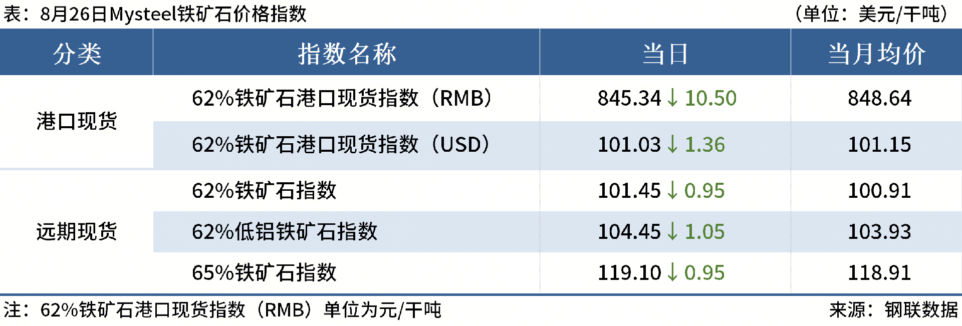 ◎8月26日,全國主港鐵礦石成交81.40萬噸,環(huán)比減27.3%;237家主流貿(mào)易商建筑鋼材成交8.31萬噸,環(huán)比減25.2%。