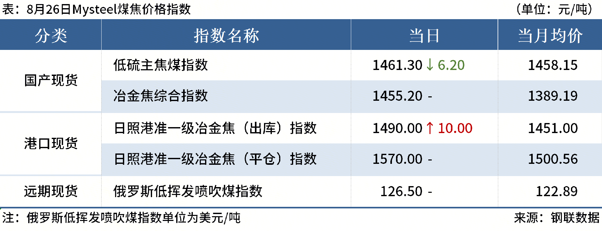 ◎Mysteel調(diào)研了河北鋼廠高爐檢修以及庫存狀況。從結(jié)果來看,河北鋼廠存在高爐集中檢修情況,大都處于8月31日-9月3日期間,且目前除了一些自帶焦化的鋼廠焦炭庫存處于低位以外,其余鋼廠基本可以保障一周的焦炭消耗儲量,對焦炭按需采購。詳情>>