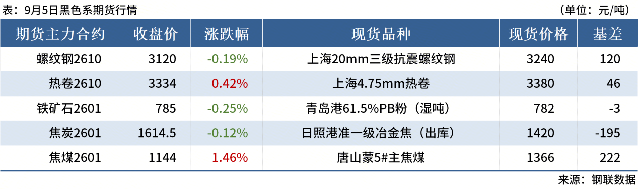 ◎9月5日,全國(guó)主港鐵礦石成交146.70萬(wàn)噸,環(huán)比增62.1%;237家主流貿(mào)易商建筑鋼材成交11.33萬(wàn)噸,環(huán)比增12.2%。