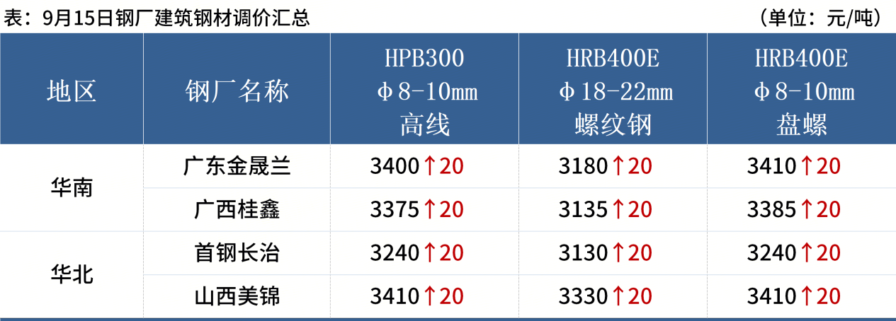 ◎ 中鋼協(xié):9月上旬,重點(diǎn)統(tǒng)計(jì)鋼鐵企業(yè)共生產(chǎn)粗鋼2087萬噸,平均日產(chǎn)208.7萬噸,日產(chǎn)環(huán)比增長7.2%。詳情>>