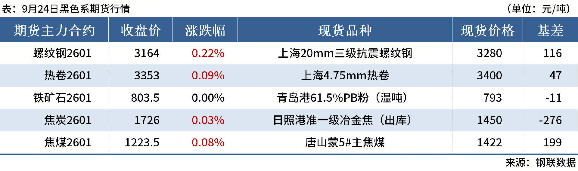 ◎9月24日,部分焦企提漲50-55元/噸,主流焦企計(jì)劃25日對(duì)焦炭價(jià)格提出首輪漲價(jià),焦鋼企業(yè)雙方博弈加劇。