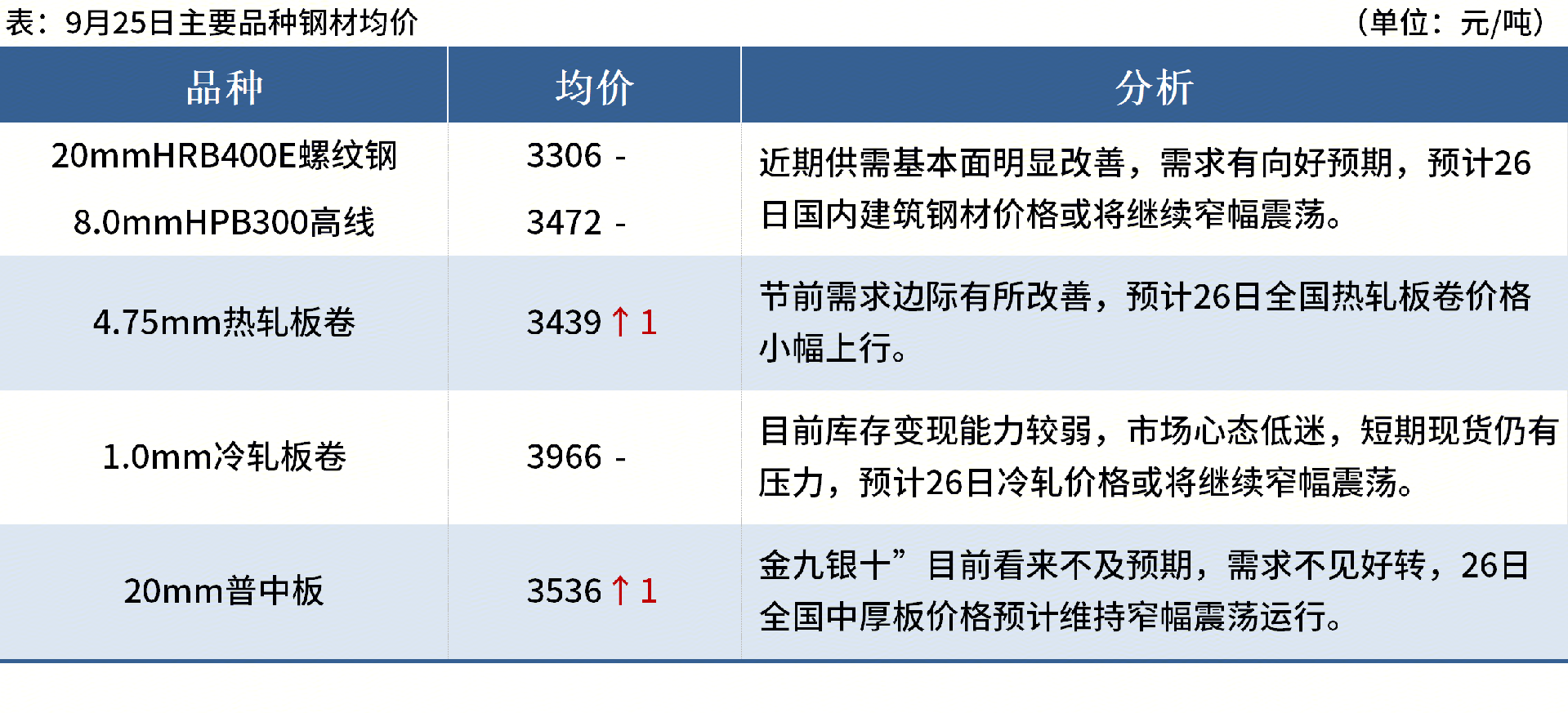 ◎9月25日,全國(guó)主港鐵礦石成交111.10萬(wàn)噸,環(huán)比減28.3%;237家主流貿(mào)易商建筑鋼材成交10.82萬(wàn)噸,環(huán)比增4.1%。