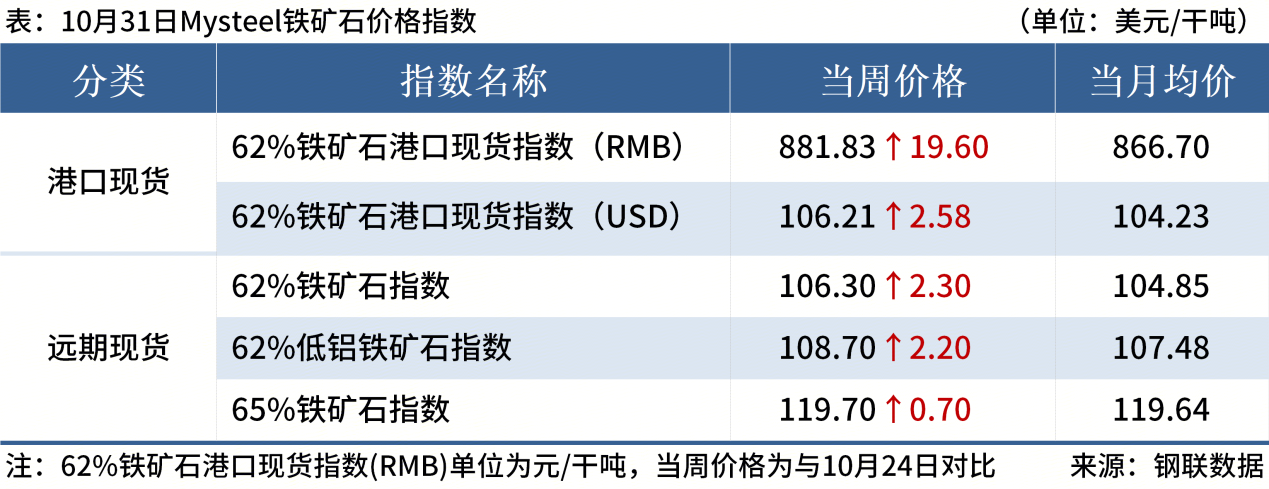 ◎ 10月31日,全國(guó)主港鐵礦石成交79.60萬(wàn)噸,環(huán)比增7.6%;237家主流貿(mào)易商建筑鋼材成交8.99萬(wàn)噸,環(huán)比減0.3%。